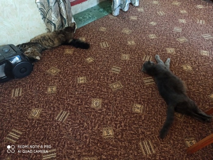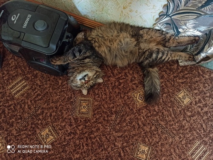 Мурчик приник к пылесосу, оторвать так и не смог.