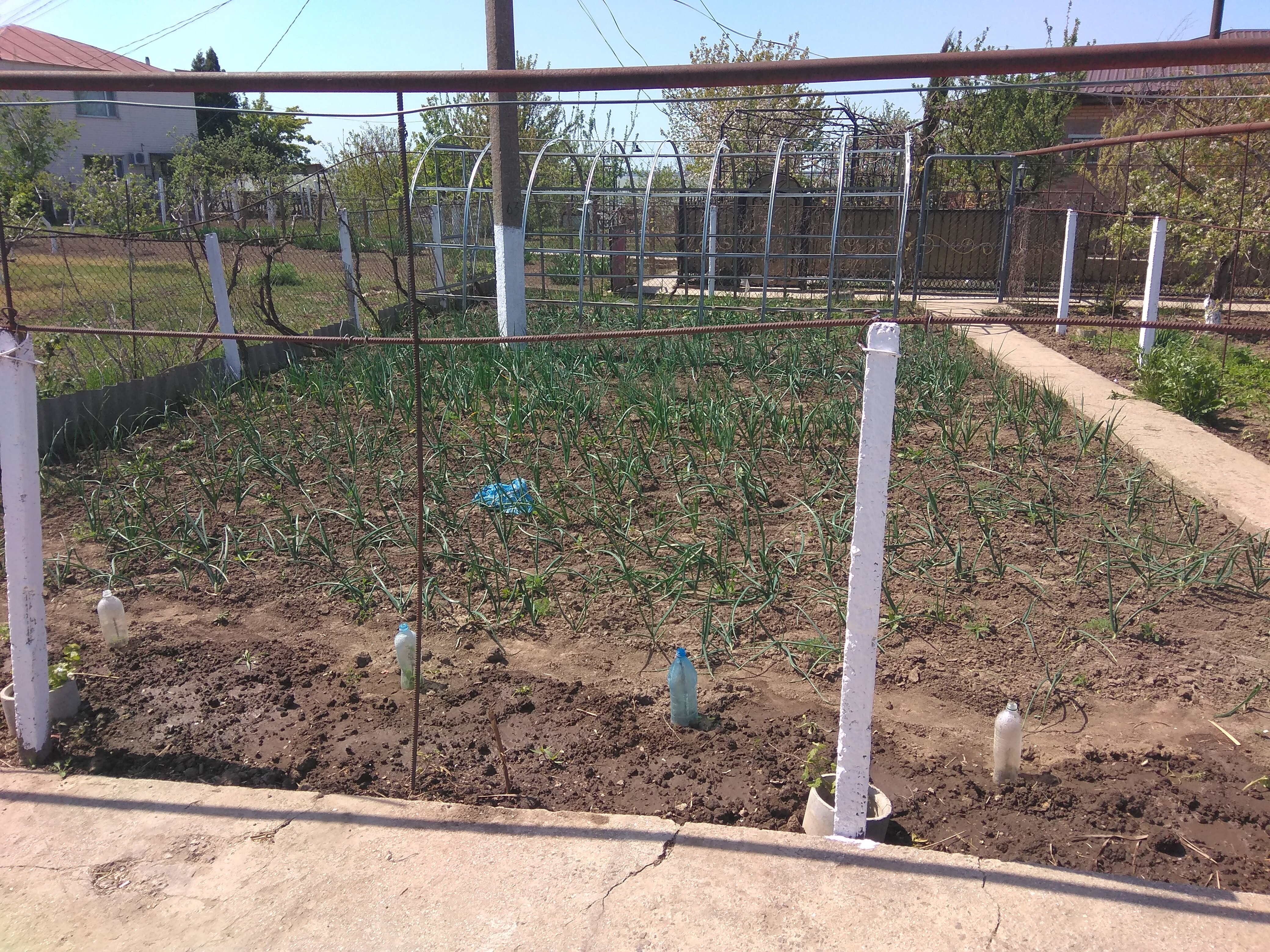 В этом году засадили в основном все картошкой,луком. Я на даче взял черенки роз. На фото розы под банкой. и лук с чесноком. Теплицу нам сосед подарил, уже поздно ее заряжать. За бутылками насеял кучу семян цветов.