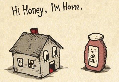 популярное выражение "Привет, дорогая, я дома", что дословно можно перевести как "Привет, мёд, я дом"