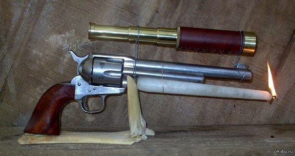 Револьвер с оптическим прицелом и подствольным фонариком