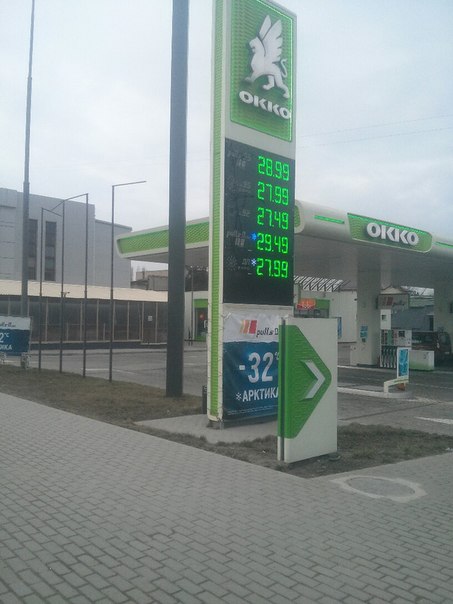 Тем более у ОККО всегда бензин дороже. Вот Запорожье то же ОККО, сегодня, возле первого автовокзала (там на 1,5 гривны обычно дороже, ибо "рыбное" место и только один продавец).