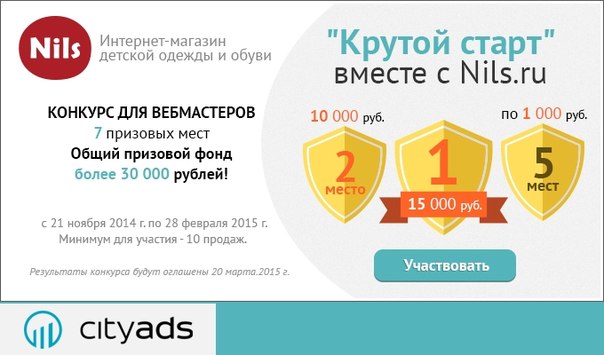 Представляем вашему вниманию супер-конкурс от интернет-магазина детской одежды и обуви с общим призовым фондом в размере 90 000 рублей, от оффер Nils (ID: 14005, статус Базовый)!