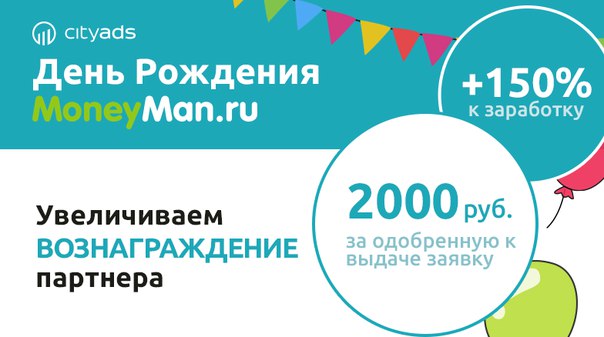 В честь трехлетия компании партнерская программа MoneyMan (ID: 4195, статус Базовый) объявляет акцию «День Рождения MoneyMan».