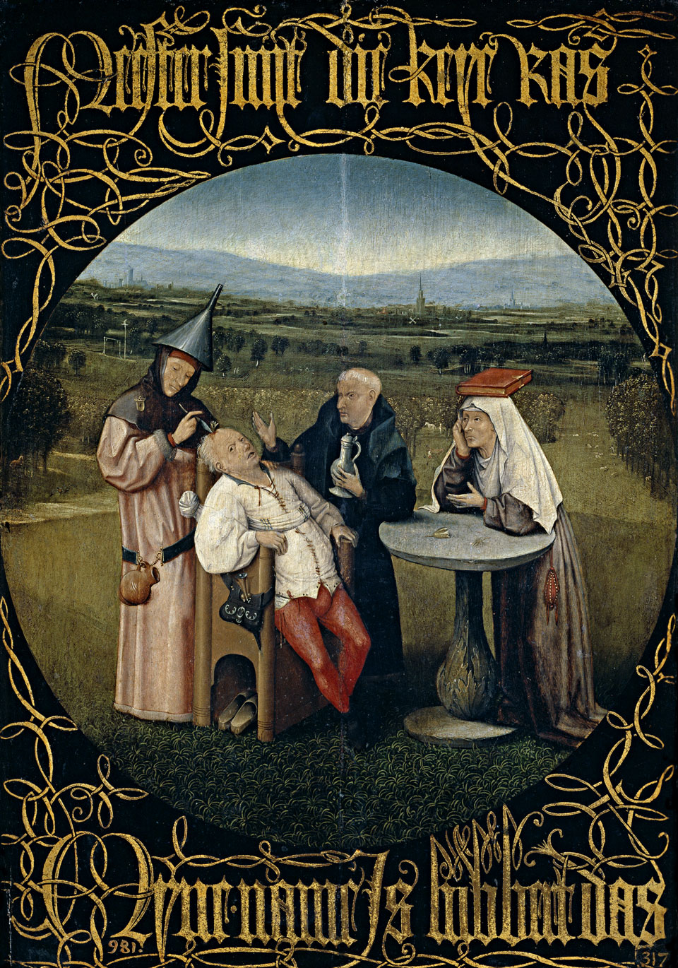 Она неофициально называется "извлечение камня глупости". Только извлекает некий жулик из пациента тюльпан. А другой тюльпан лежит на столе, видимо в качестве оплаты принял.