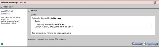 Последняя ставка от аrtiom7777 - 16000 wmr Если ставок до 15:21 мск не будет, то сегодня в 15:21 мск сайт будет продан аrtiom7777