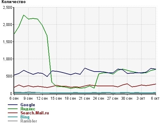 А траф весь месяц медленно рос и с Яши догнал гугла. А вот сегодня стрельнул. Я уж и не надеялся, думал придется привыкать получать теперь такую порцию трафа. Ан нет, Яша мой 3.5 летний сайтик вытащил, спасибо ему. Посмотрим, как дальше будут дела.
