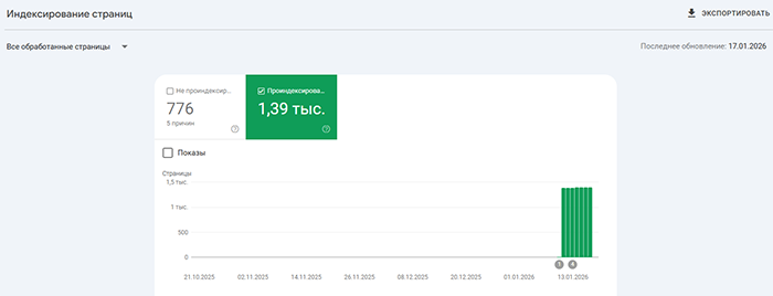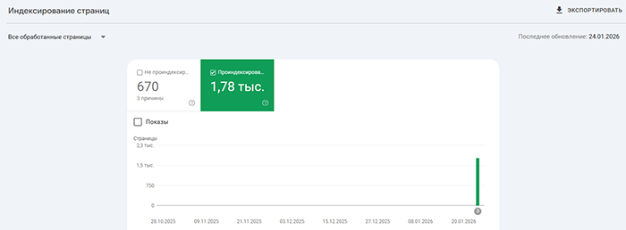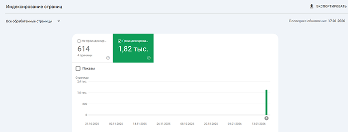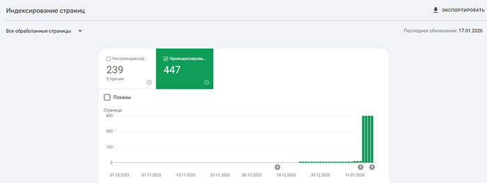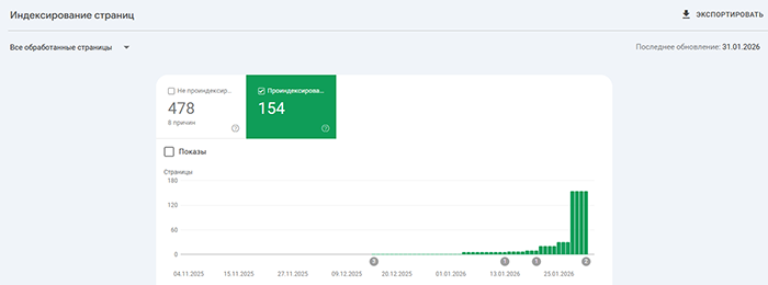 Индексация сайтов наших Заказчиков на скриншотах из Google Search Console