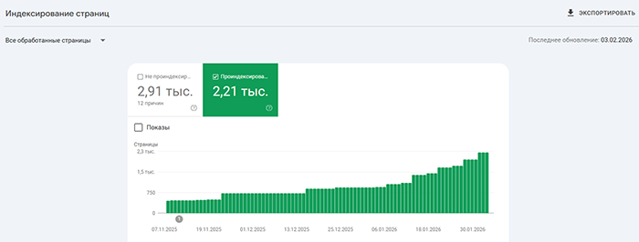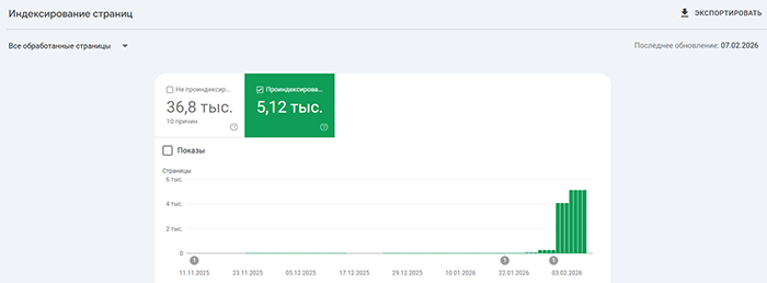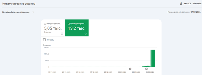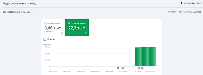 Индексация сайтов наших Заказчиков на скриншотах из Google Search Console