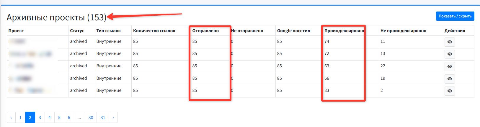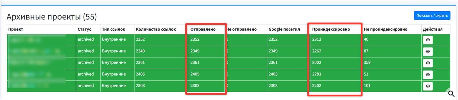 Примеры успешной индексации сайтов наших Заказчиков