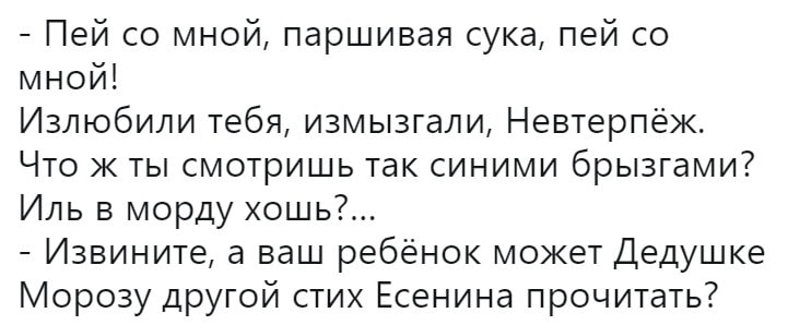 Если бы я стих не сразу брякнул, а как-то предварительно прокомментировал, то эффект был бы, наверное, не столь удручающим...