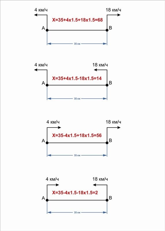 Щас попробую зарисовать 4 возможных решения данной задачи, если учитывать, что они двигались из разных сел, с расстоянием между ними в 35 км.