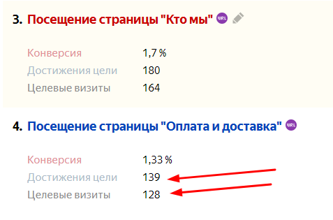 Там есть понятия: "Достижения цели" и "Целевые визиты".