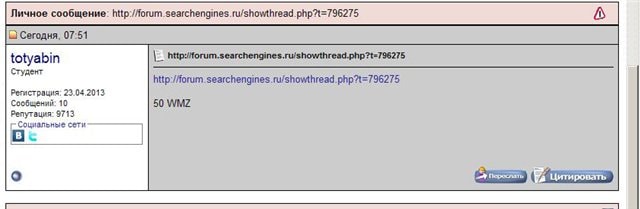 В ЛС поступила ставка 50 wmz.