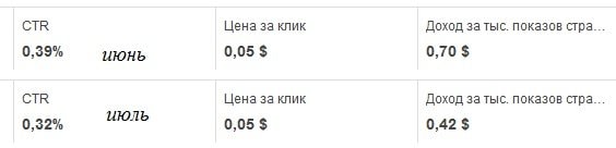 Как видим, ctr не сильно просел, цена клика та же. Доход за 1000 показов страницы упал на 40%. Получается 40% блоков тупо не показывает.