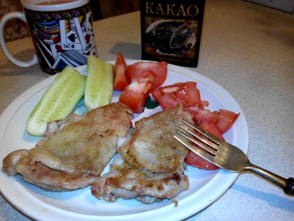 Сегодня на ужин была курица с розмарином (первый раз попробовал такое сочетание, нашел рецепт в интернете, получилось вкусно).