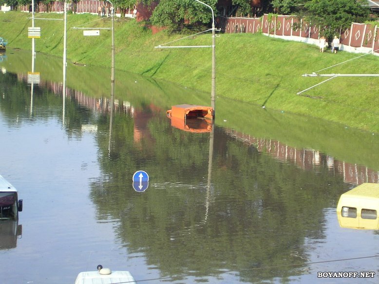 Хотя есть подборка форс-мажора, потоп на центральных улицах - грузовики и скорая, маршрутки с людьми... По крышу в воде.