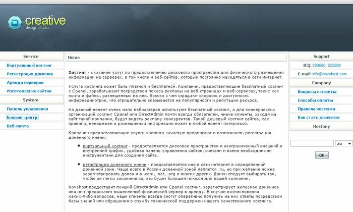 Вместо сайта хостинг-провайдера, который обычно выглядит так: