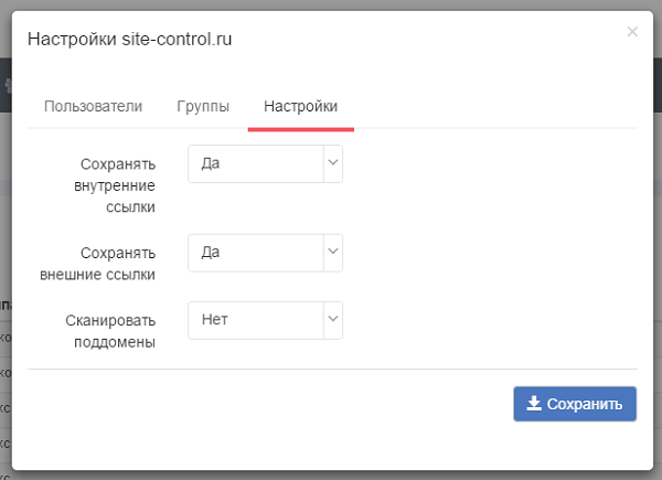 - Возможность настроить сайт: сканировать поддомены сайта или нет;