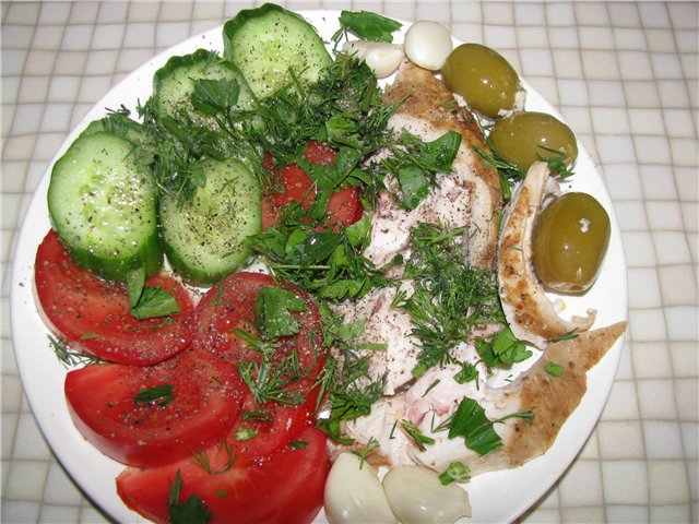 Да, для неэкстремалов, типо упомянутой выше моей жены, вот такой салатик рекомендую: