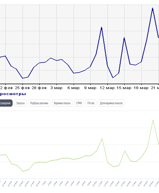 Но самое главное, CPMV сразу в начале дня был маленький, т.е. от количества все же не зависит. Было бы 200 тыс снова, то доход бы просел на 30% из-за CPMV.