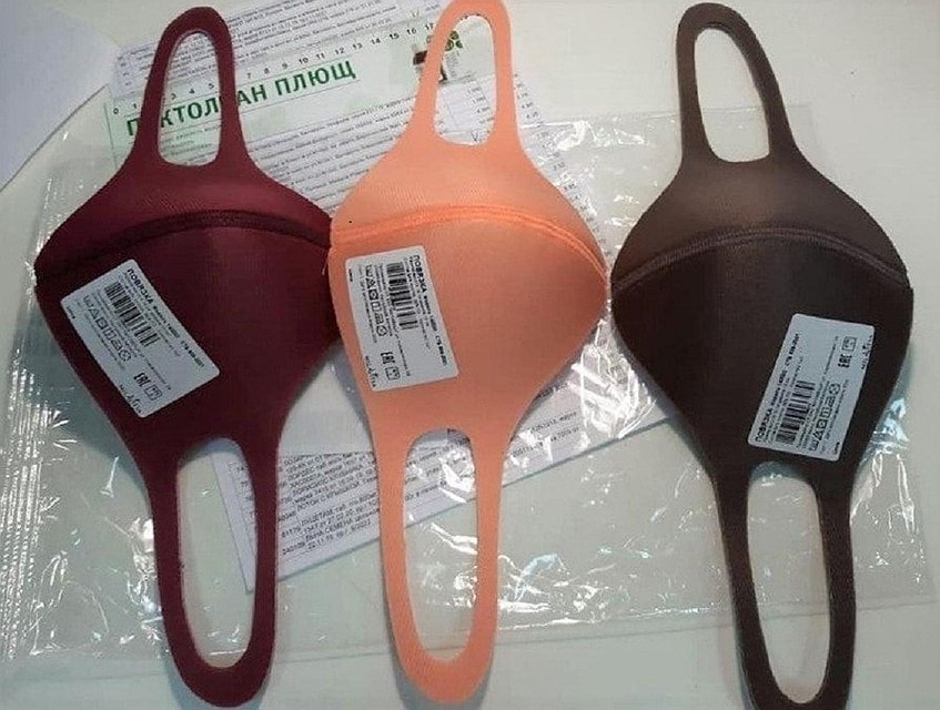 Своими хлопковыми масками удивила белорусов ещё одна фабрика — «Світанак». Эти изделия с виду напоминают элемент мужского нижнего белья, этакий гульфик для лица.