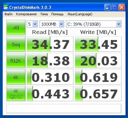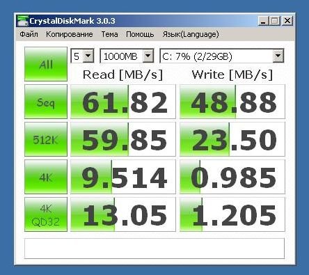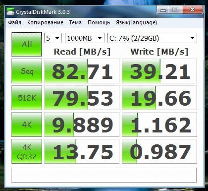 Итого: вот результаты CrystalDiskMark на HP nc8230 с 2ГБ DDR2 и 1.8GHz Intel Centrino.