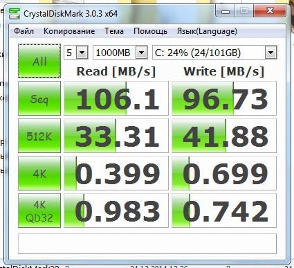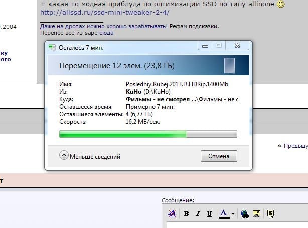 Так этому ноутбуку 2 года всего от роду. У меня на флешку какую-то (SanDisk что ли 16ГБ) копирует на постоянной скорости в 10-11МБ/с и инет такой же, а тут по винту не могу перебросить (рукалицо)---------- Добавлено 17.12.2014 в 01:00 ----------По SSD на ретробук :)