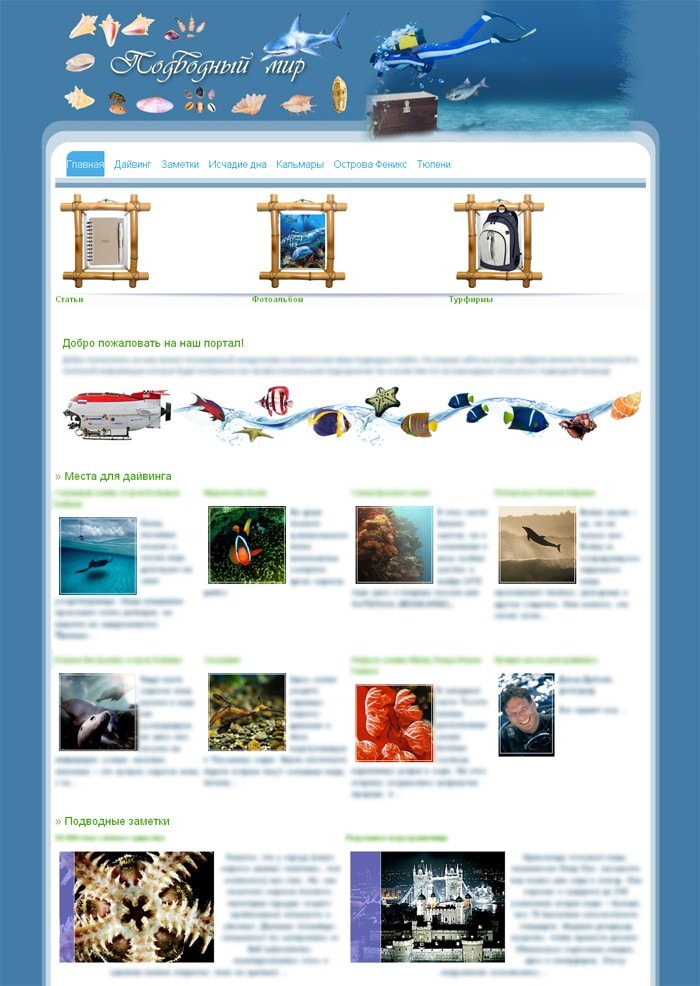 Продам сдл на тему Подводный мир. Движок – Drupal 6.0.