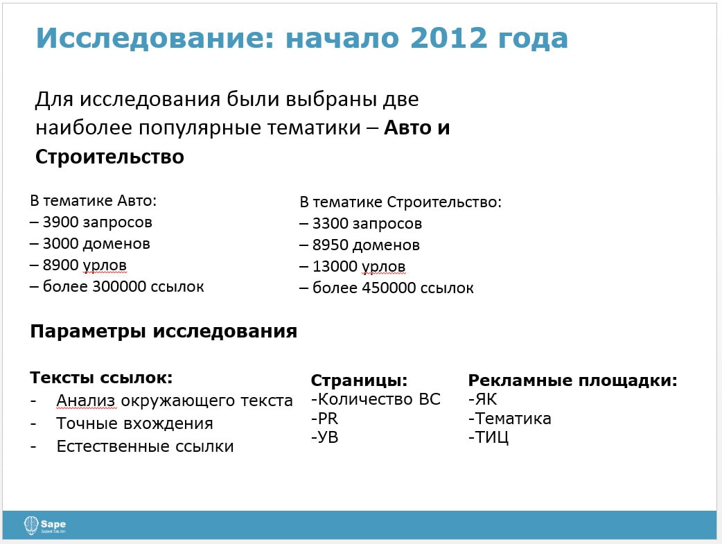 Нашел презентацию Евгения Пошибалова с конференции кибермаркетинг 2012, в ней есть аналогичный анализ, также есть видео с выступлением Евгения по этой же теме.