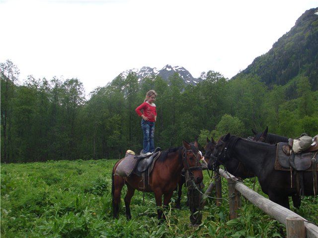 5) прогулка по окрестностям поселка Архыз.. Диана пьет лимонад на лошади =))
