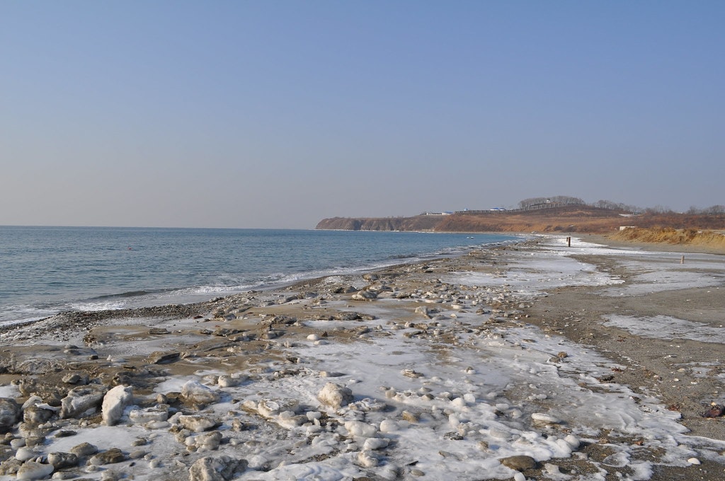 У моря +1. Лёгкий ветерок. Приятно гулять по песку и замёрзшей морской пене.
