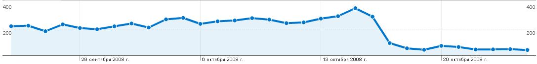 Падал трафик с гугла до 0, с гугла приходили только на картинки, через две недели все вернулось но трафик с гугла в два раза меньше чем был раньше (
