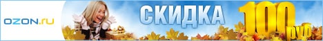 Введите кодовое слово «СТО РУБЛЕЙ » перед оформлением заказа здесь. Перед вводом кодового слова Вам необходимо зарегистрироваться или авторизоваться на сайте. Количество заказов в рамках акции - 1. Кодовое слово вводится перед оформлением заказа. Скидка действует с 22 сентября по 25 сентября 2011 года.