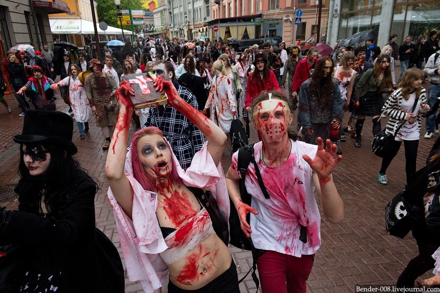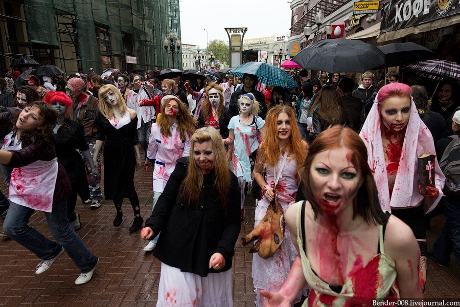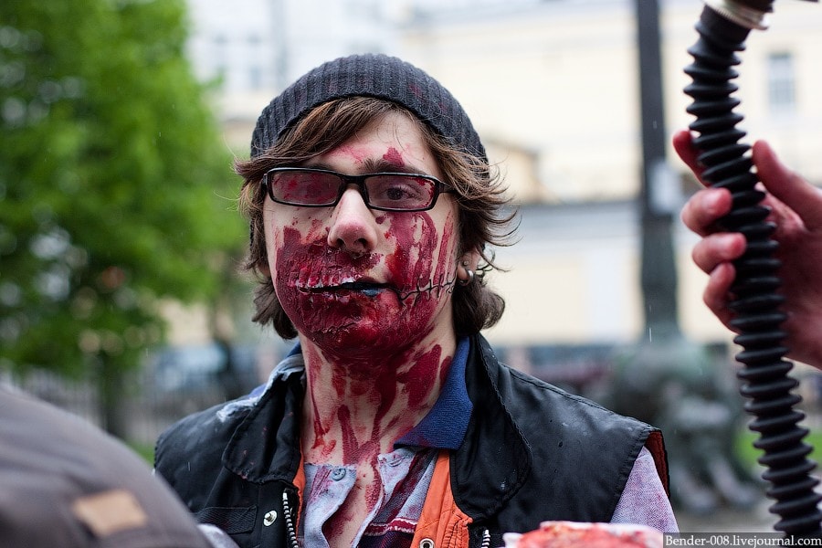 Невинные зомби подверглись нападению других зомби с оружием и в форме. Злые зомби арестовывали хороших зомби.