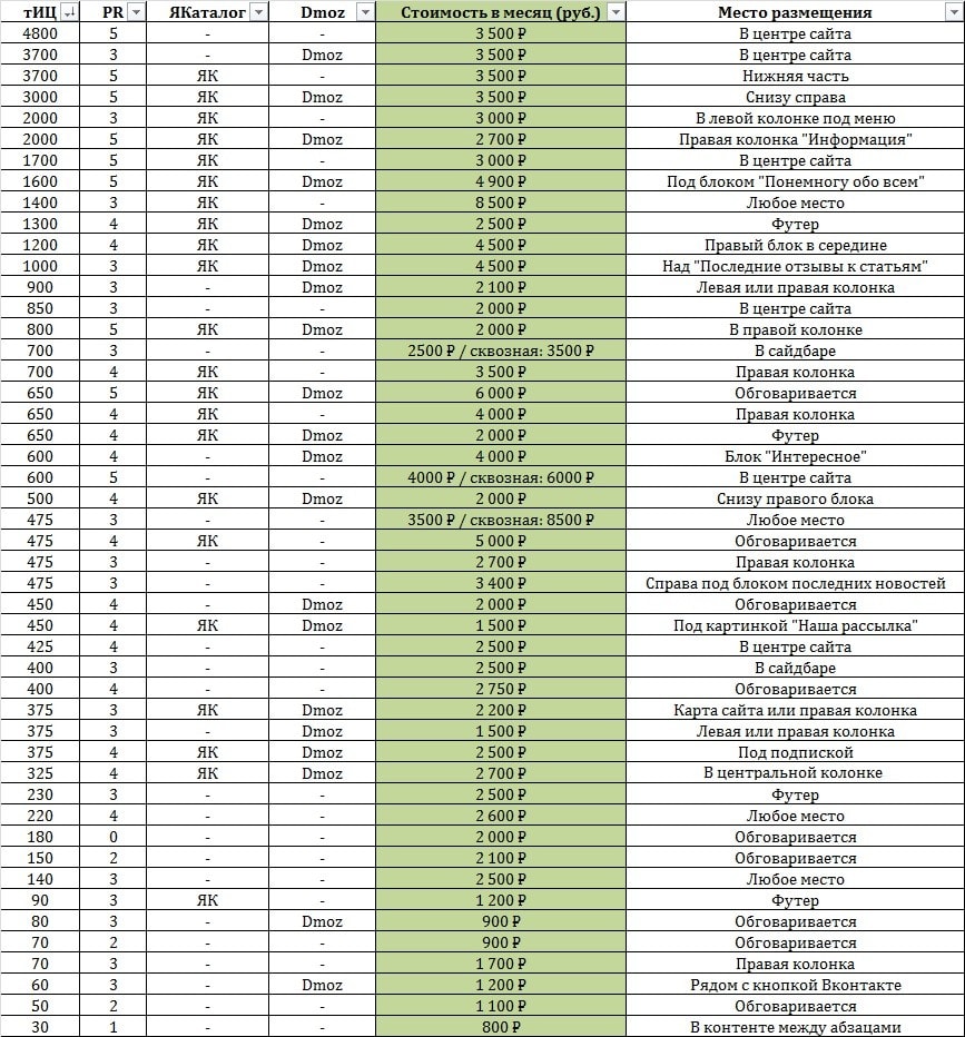 В прайс добавлено 4 крупных СМИ ресурса, ссылки на прайс в первом посте актуальны.