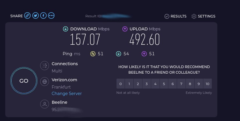 И я же вам картинку свою привёл, где пинг у меня во Франкфурт 24 а у вас на картинке 54. И скорость у вас подрезана на картинке. - опять наверно скажите, что это из за кабелей и сетей.