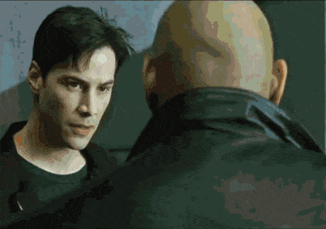 Морфеус что говорит? Похоже на "Твою мать!"