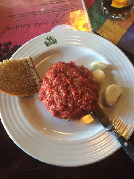 В Праге столкнулся с диким совершенно блюдом: сырое мясо в виде фарша с чесноком и гренками ...