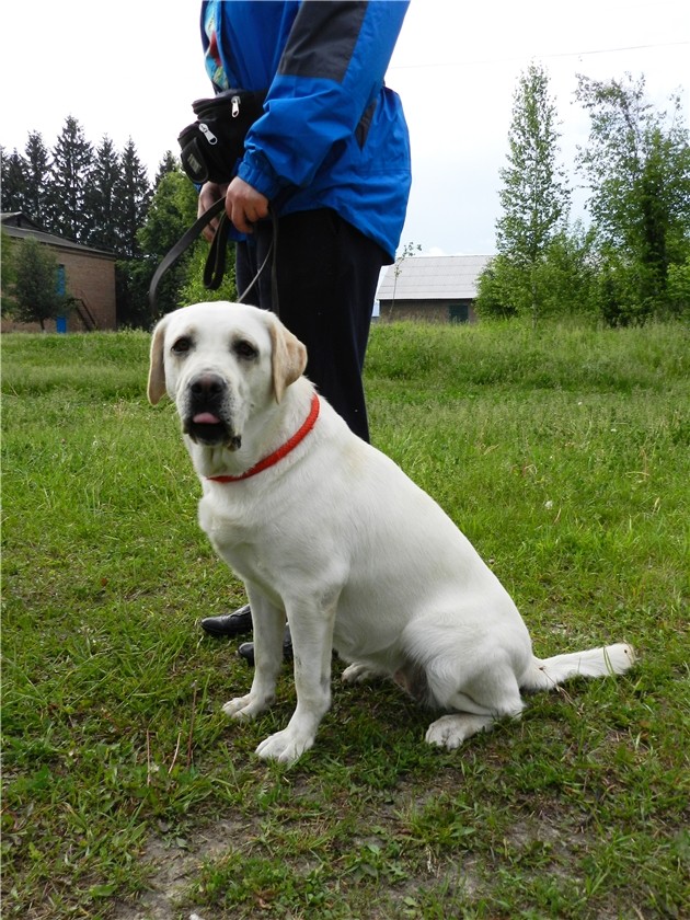 Пока я учу свою морду команде "рядом", она язык показывает, проказница.
