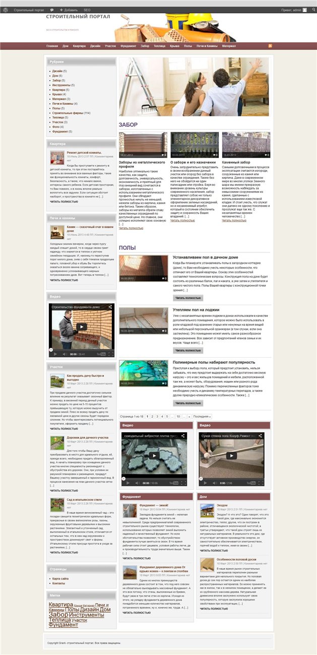 Дизайн: уникализированная тема Wordpress журнального вида, очищенная от ссылок.