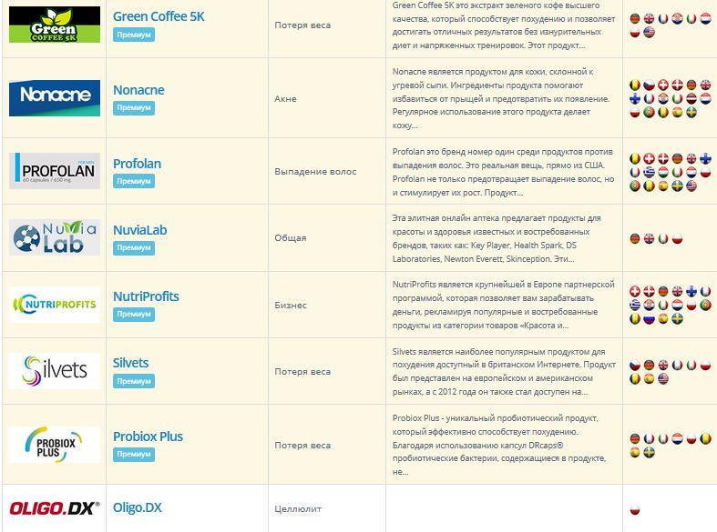 Партнерская программа – под буржунет – с массой препаратов: