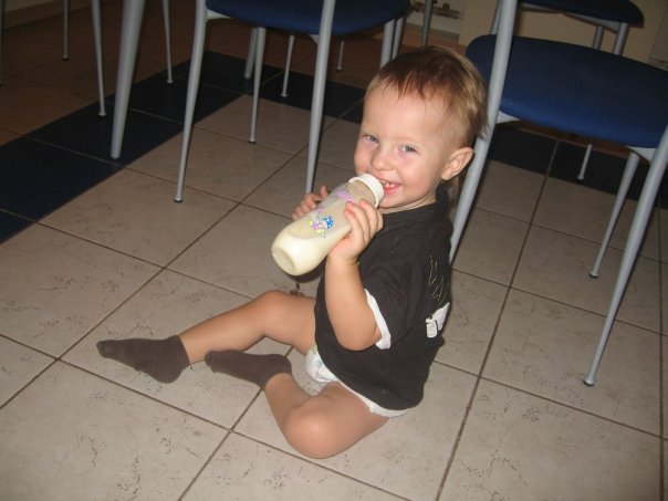 А это мой карапуз отмечает Новый год с бутылкой молока:)