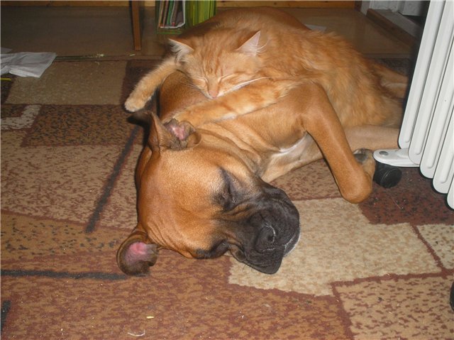А по теме: эта милая шавка, спящая в обнимку с котами, без намордника за пределы двора не выводится, бо невоспитанная, сволочь)). На улице радостно лезет знакомиться с прохожими, что выражается в прыгании на них с дружеским рычанием. Прохожие чего-то не понимают и глупо пугаютсо😂
