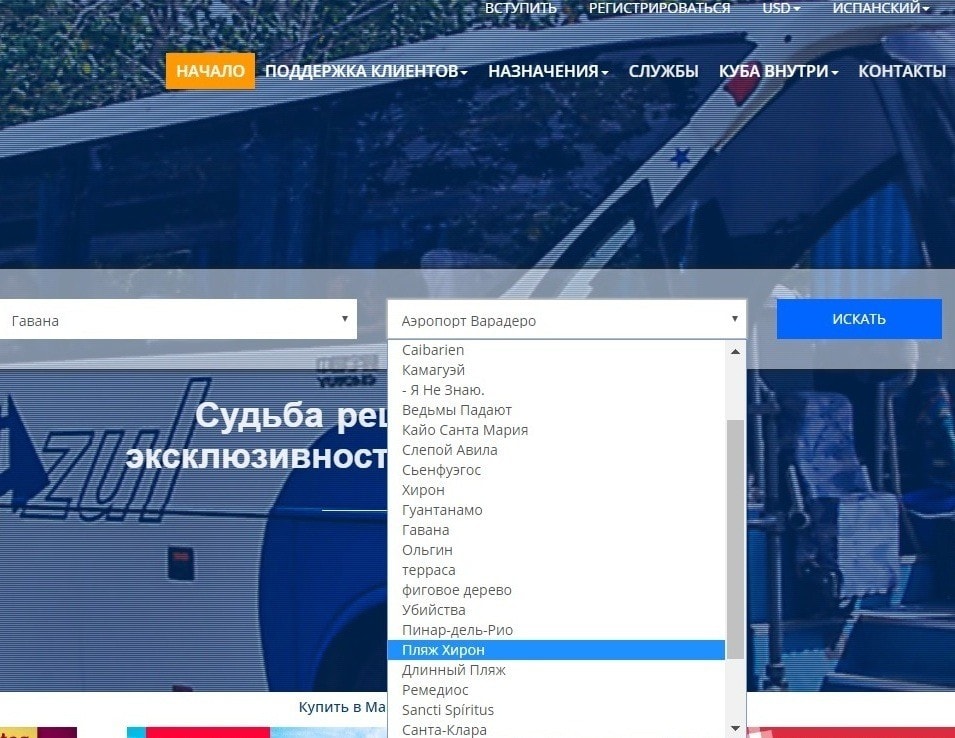 Попытался забронировать автобус из Гаваны в Варадеро. Как вам перевод станций с испанского? 😮😮😮😮