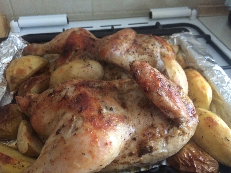 На обед и на ужин - огромная жирная кура как слон. Всю сожру и сдохну.
