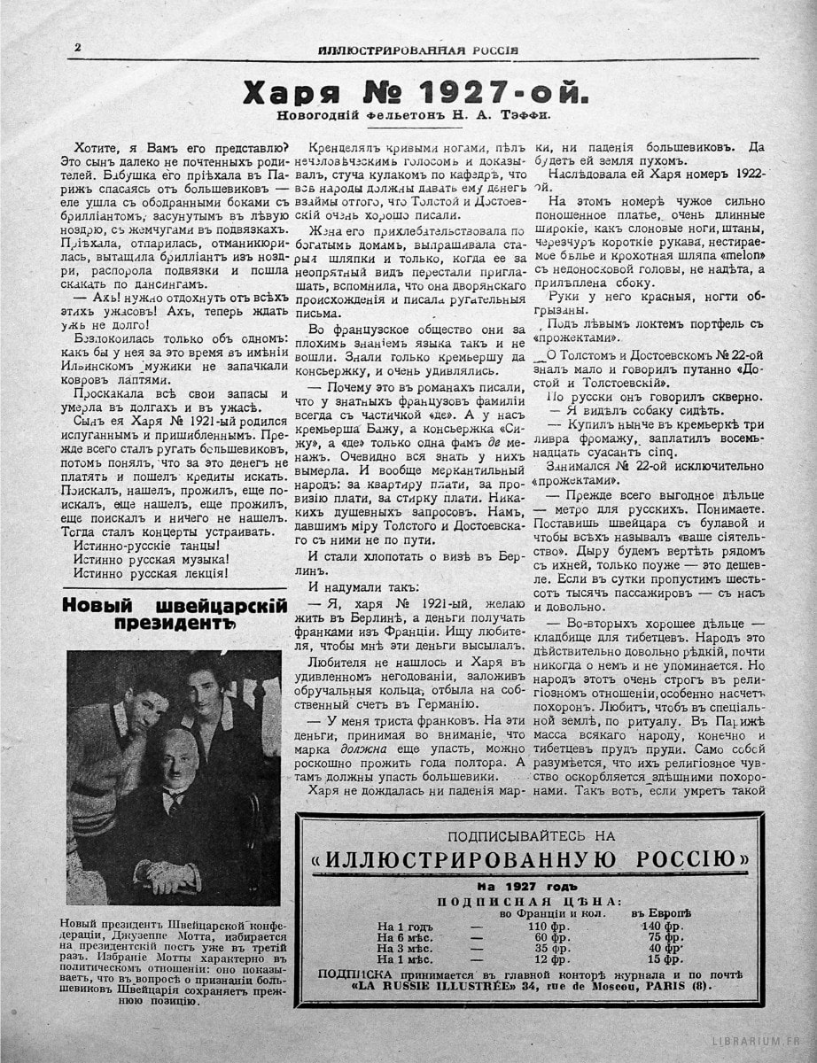 На эту тему есть забавный рассказ в "Эмигрантской прессе" от 27-го года, извиняюсь за скрин, печатной версии не нашел.