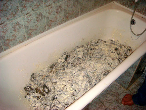 Я представил. Все уже пьяны настолько, что женщины - в одних жемчугах... Вырубился свет, худо-бедно нашли пару свечек, зажгли... В бокалы с вином спьяну накидали рыбьих плавников с чешуёй...
