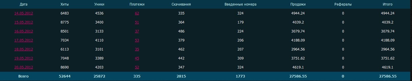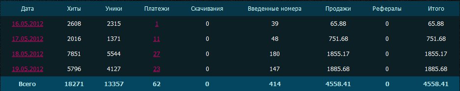 zusull, судя по количеству сообщений, Вы опытный вебмастер. Думаю что Вы прекрасно понимаете что можно сколько угодно выкладывать разной статистики, но у каждого вебмастера она будет разной и сильно зависеть от того как стоит плеер, что стоит рядом на сайте с плеером, откуда траф. Кроме теста в течение 1-2х дней ничто не даст информации о конверте Вашего трафика---------- Добавлено 22.05.2012 в 10:14 ----------добавили выбор тарифов, для псевдо доступны смс стоимостью ~100р, 170р и 250р.