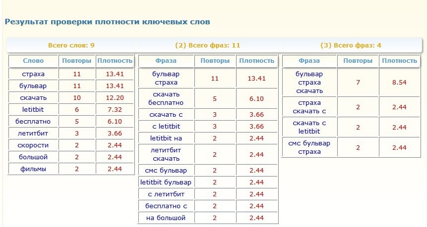 Данный фильтр накладывается на страницы, содержащие слишком большую плотность ключевых фраз или слов.