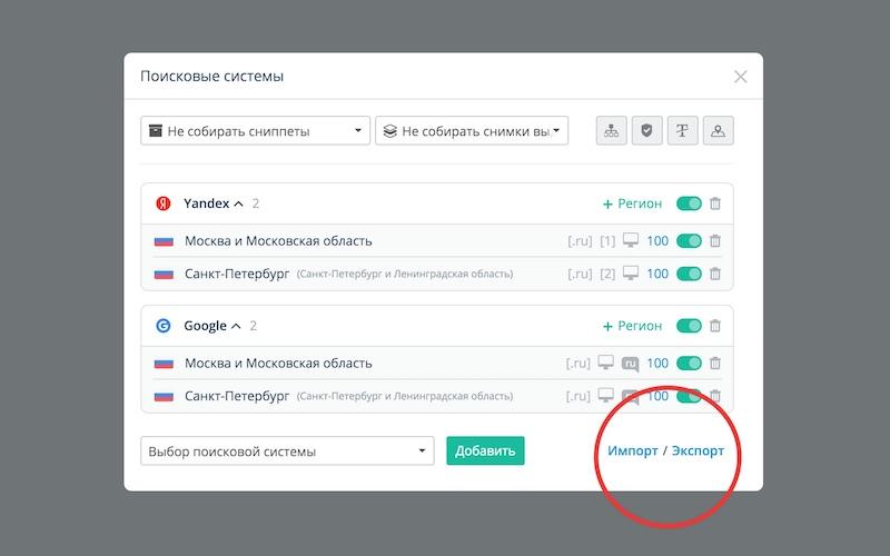 Добавили возможность импортировать регионы для проверки позиций списком. Кнопка может оказаться незаменимым помощником, если нужно добавить сразу 50-100-200 и более регионов.